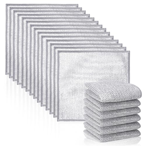 Jostift - طقم فوط أطباق سلكية متعددة الأغراض للاستخدام الرطب والجاف شاي مقاومة للخدش بطبقة مزدوجة قماش تنظيف قابل لإعادة الاستخدام للمطابخ وأدوات المائدة من جوستيفت 20 قطعة فضي