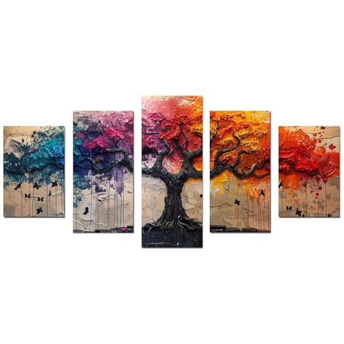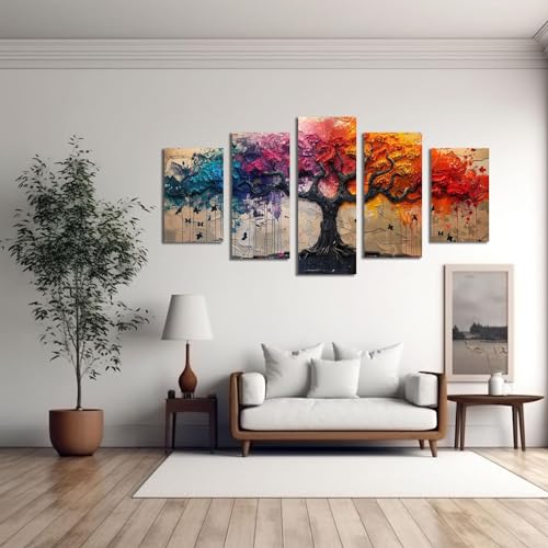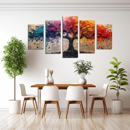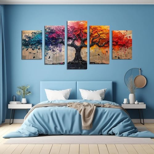 JOSUE - لوحة فنية من القماش بتصميم شجرة الحياة من جوسو، لوحة فنية ملونة لديكور المنزل، بوستر صورة فنغ شوي بلون ازرق فينغ شوي للمدخل والمدخل - 5 قطع
