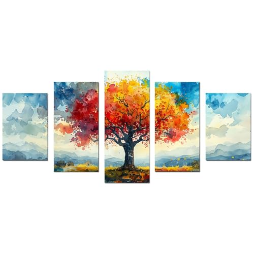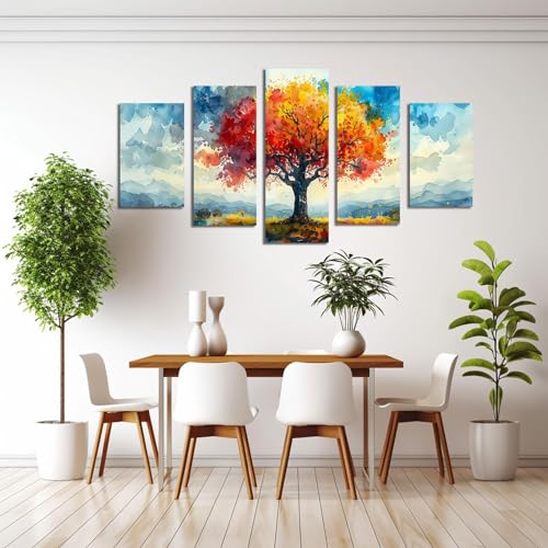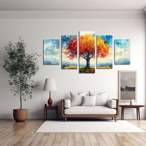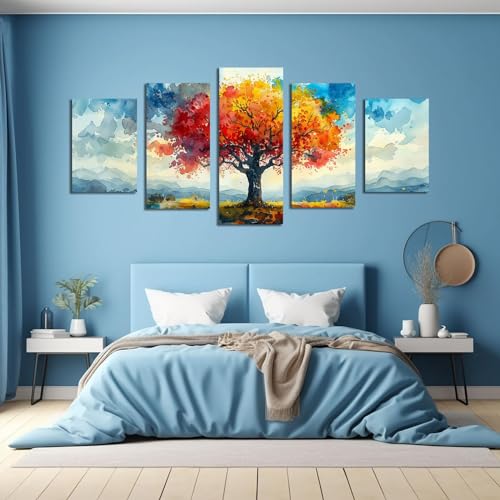 JOSUE - لوحة فنية قماشية بتصميم شجرة الحياة بالوان مائية من جوسوي مكونة من 5 قطع، لوحة فنية من القماش لديكور المنزل، بوستر صور ازرق فينغ شوي للمدخل للتعليق على الحائط - 5 قطع