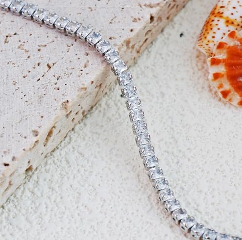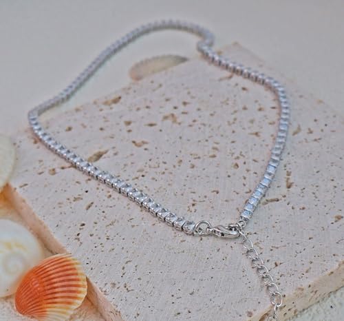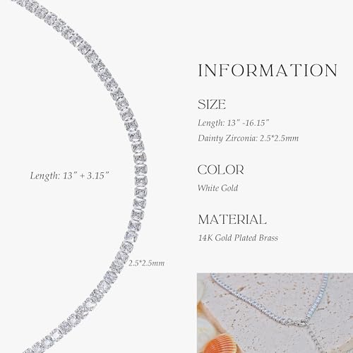 Jovialpixie - قلادة تنس للنساء مطلية بالذهب عيار 14 قيراط مرصعة باحجار الزركونيا المكعبة وسلسلة قابلة للتعديل 13-18 انش، هدية للكريسماس والمعمودية والزفاف واعياد الميلاد والذكرى السنوية (مرفق في الصندوق)، 13-15 انش
