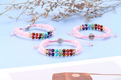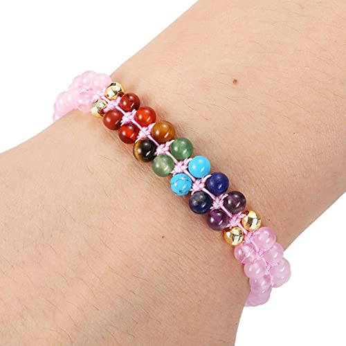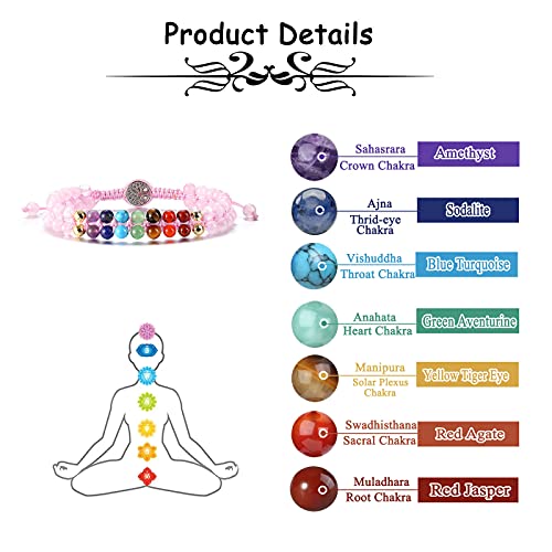 Jovivi - سوار خرز الشفاء الريكي 7 شقرا من جوفيفي وردية كوارتز للنساء الأحجار الكريمة الطبيعية والقلق أحجار اليوجا مضفر مطرز قابل للتعديل هدايا مجوهرات للرجال