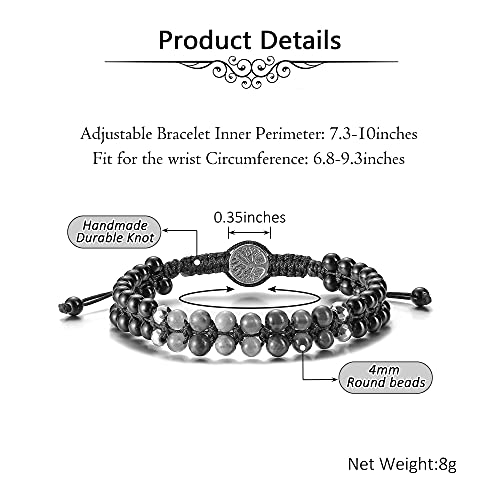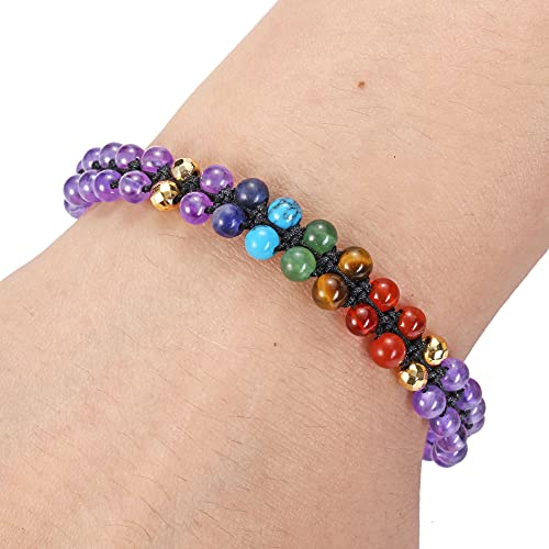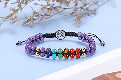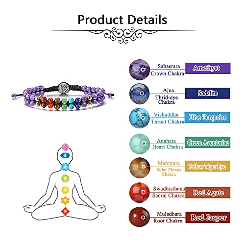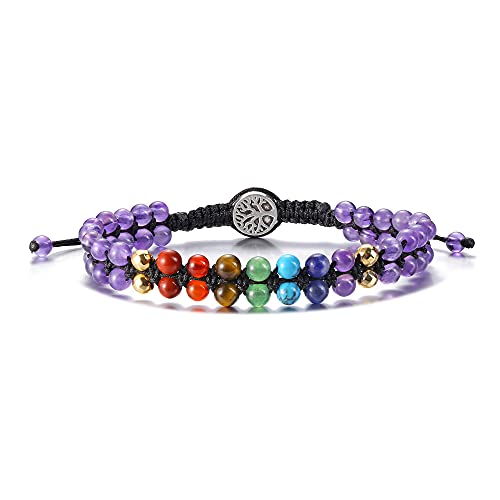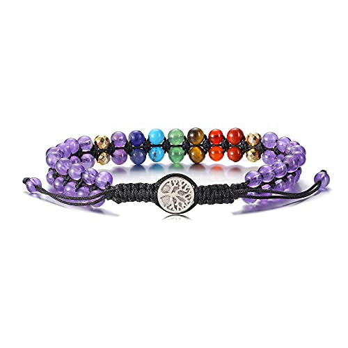 Jovivi - سوار خرز مرتبط بالشاكرا للنساء من جوفيفي يدوي الصنع، سوار بطبقة مزدوجة احجار كريمة 4 ملم قابل للتمدد بدلاية بتصميم شجرة الحياة، لاغراض علاجية لليوجا والريكي ولتوازن الطاقة, حجر, غير معروف