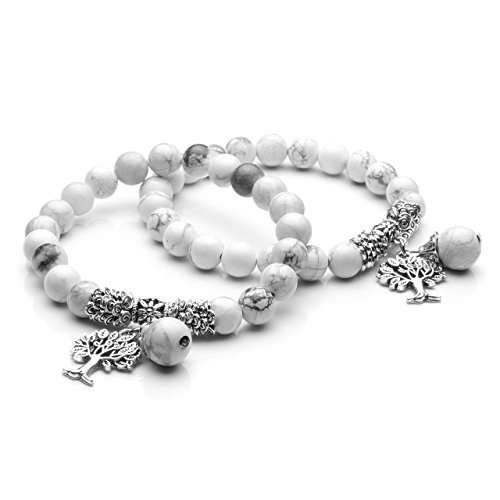 Jovivi - سوار خرز الطاقة الطبيعي شاكرا من جوفيفي، مع رأس بوذا، قابل للتمدد مع شعار شجرة الحياة، 8 ملم, 16 cm, لؤلؤ، للنساء