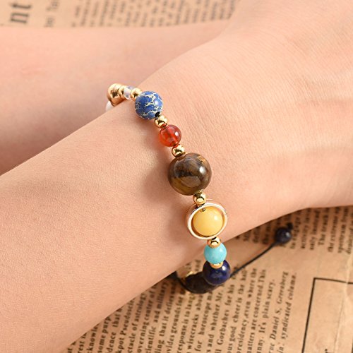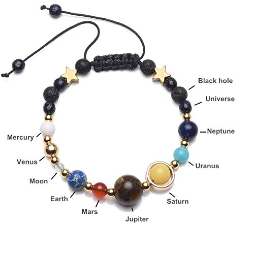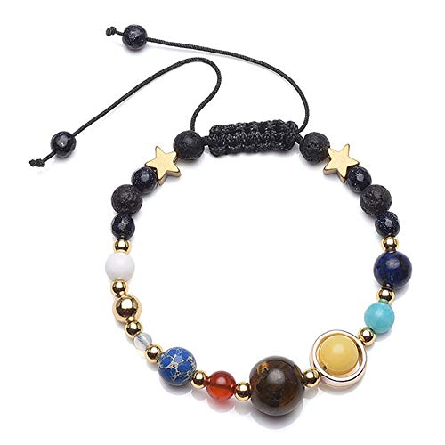 Jovivi - سوار مزدان بحبيبات خرزية طبيعية بركانية بنمط الكواكب والمجرات التسعة في النظام الشمسي لتوزيع الزيوت العطرية من جوفيفي, حجر, نو_ستون، للنساء