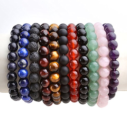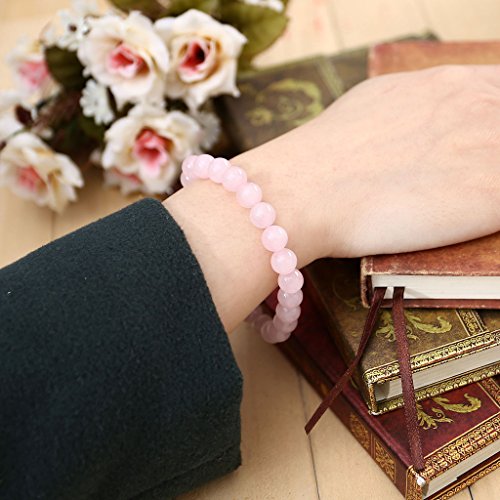 Jovivi - جوفيفي سوار خرز من احجار اللافا الطبيعية للرجال والنساء كريمة شبه ثمينة للشفاء والريكي والشاكرا وعقيق اليوجا حلقي لمجوهرات الزيوت العطرية حجر كوارتز وردي