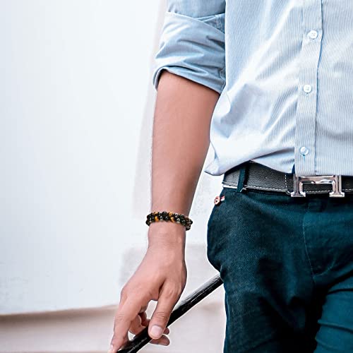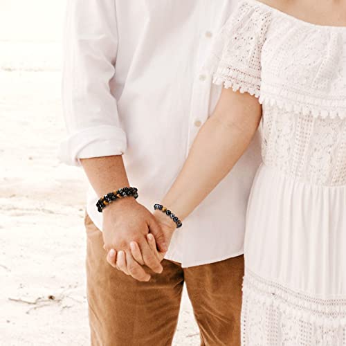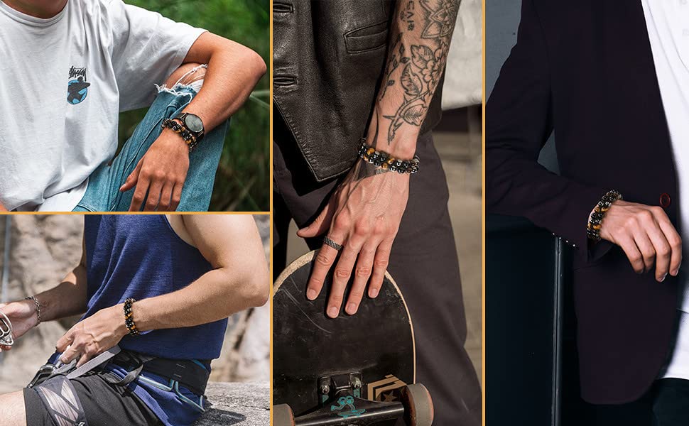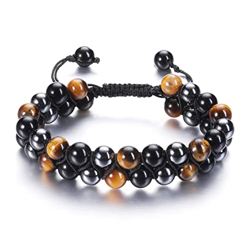 Jovivi - جوفيفي سوار مزدوج الطبقات للرجال من الزجاج البركاني الاسود وعين النمر وحجر الهيماتايت الكريستالي والشاكرا للتخلص القلق هدايا والصديق والزوج والذكرى السنوية وعيد الاب ميلاد