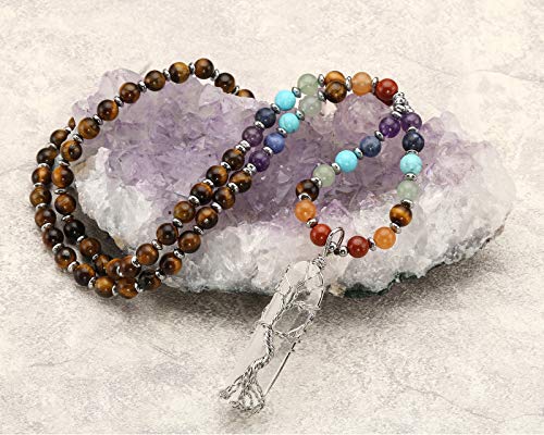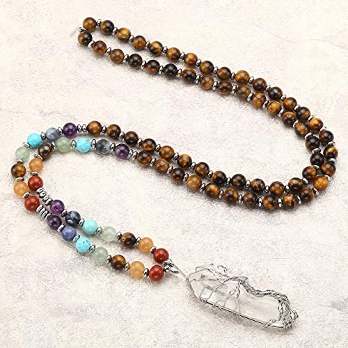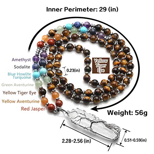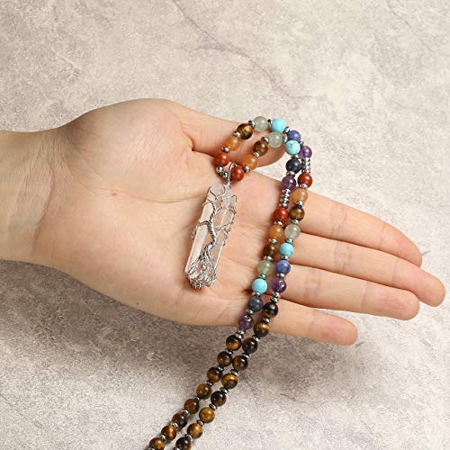 Jovivi - سلسلة بكريستالات 7 شاكرات استشفائية طبيعية ملفوفة بسلك من جوفيفي حجر كوارتز شفاف وشجرة الحياة لموازنة الطاقة والاستشفاء بتصميم مدبب للنساء للبالغين الجنسين للرجال