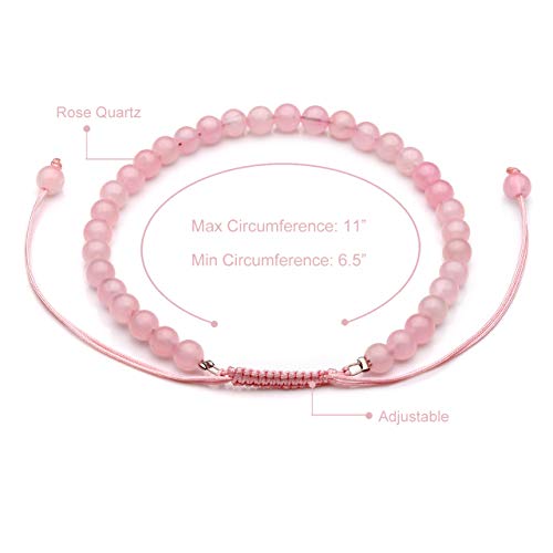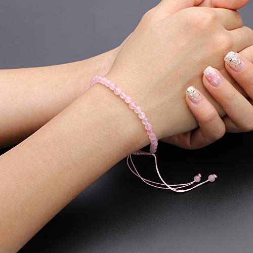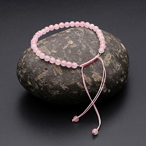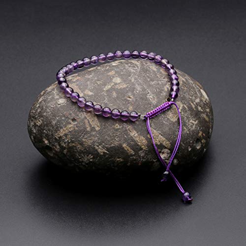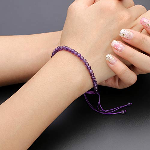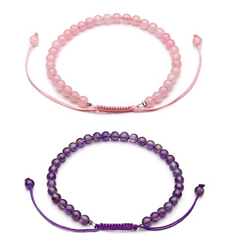Generic - سوار مضفر ومزين بخرز طبيعي من الاميثيست الروز والكوارتز والكريستال جوفيفي باللونين الارجواني والبينك بمقاس قابل للتعديل للنساء