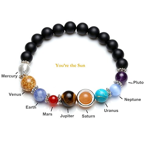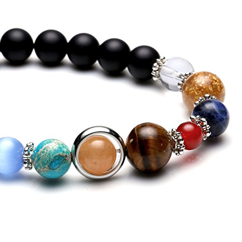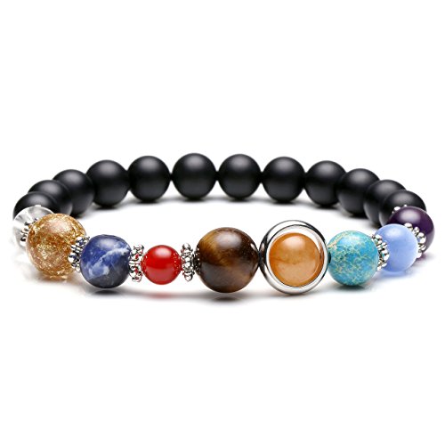 Jovivi - سوار مزدان بحبيبات خرزية طبيعية بركانية بنمط الكواكب والمجرات التسعة في النظام الشمسي لتوزيع الزيوت العطرية من جوفيفي, حجر, نو_ستون للفتيات