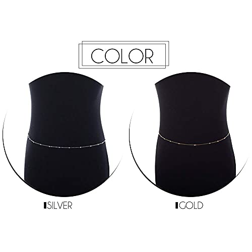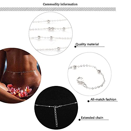Jovono - سلسلة للجسم بخرز من Jovono سلسلة مجوهرات للجسم سلسلة خصر للنساء والجيركل (فضي)