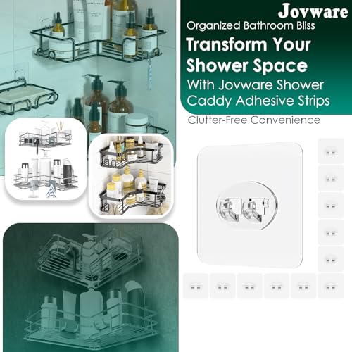 Jovware - لاصق علبة الدش، خطاف سلكي وتثبيت قوي للرف، لاصق ذاتي اللصق للحمام وحوض المطبخ ويثبت على الحائط من جوفوير، عبوة من 12 قطعة