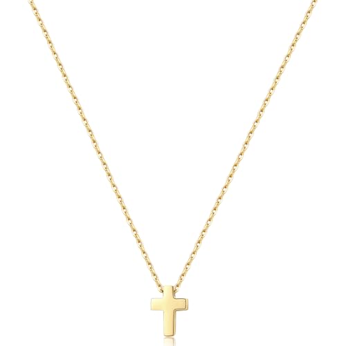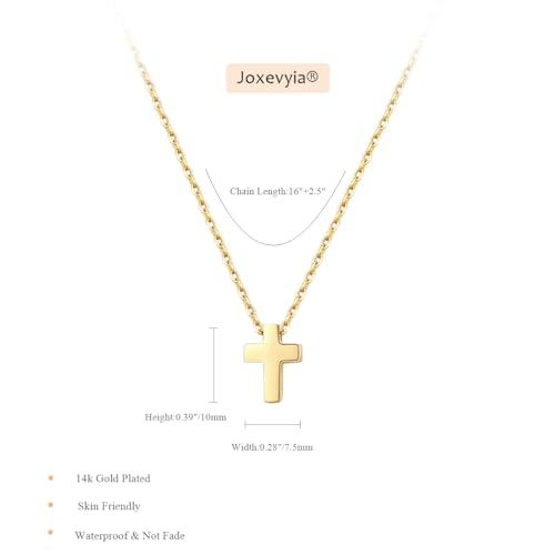 Joxevyia - عقد بتصميم صليب للنساء مطلي بالذهب عيار 14 قيراط من جوكسفييا، عقد ذهبي لطيف بدلاية على شكل صليب صغير، هدية للبنات