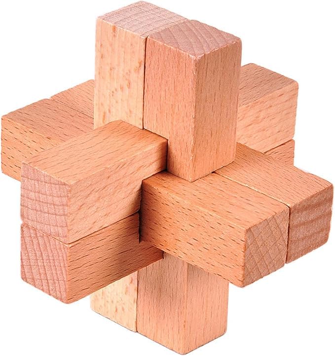 - تحدي التجميع: بازل مكعبات خشبية معقدة تتطلب التفكير المكاني لتجميع القطع في أشكال أسطوانية أو نرد.