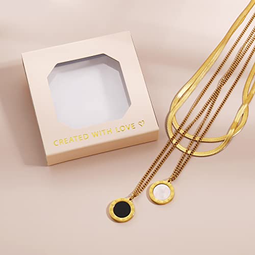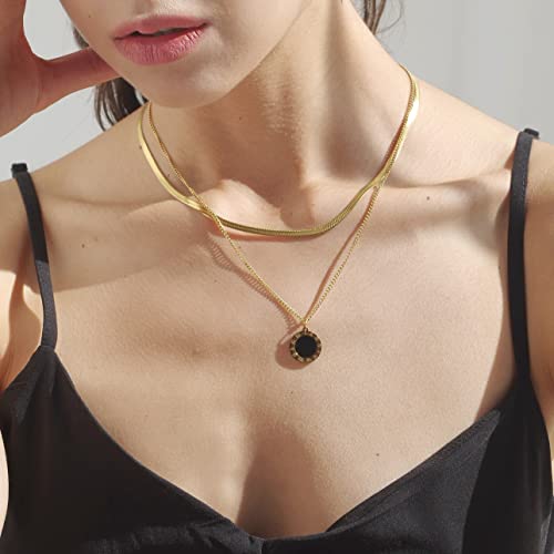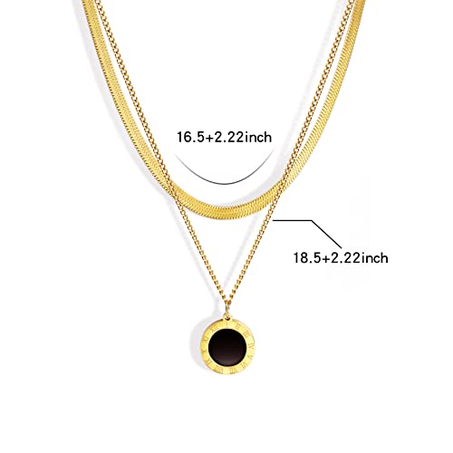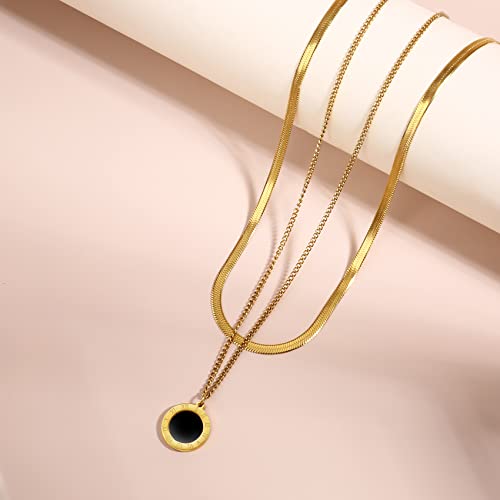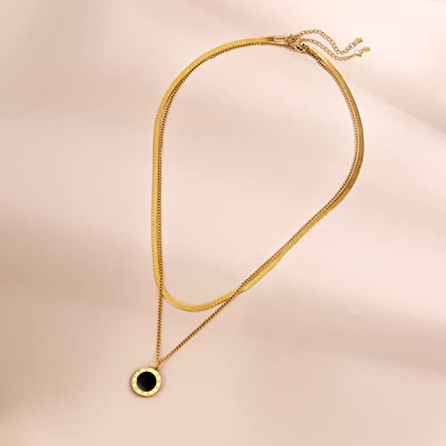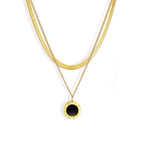 Joya Love - قلادة بدلاية الأرقام الرومانية، عقد طبقات رقيق بطول 42 سم، عقد تشوكر مسطح ومرن بتصميم هيرينجبون من الفولاذ المقاوم للصدأ المطلي بذهب عيار 14 من جويا لوف، سلاسل كوبية للرجال والنساء