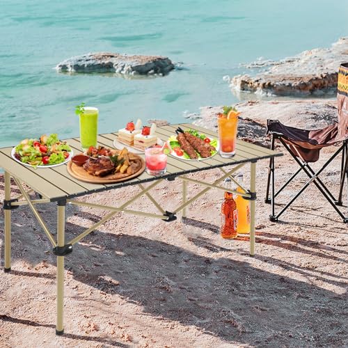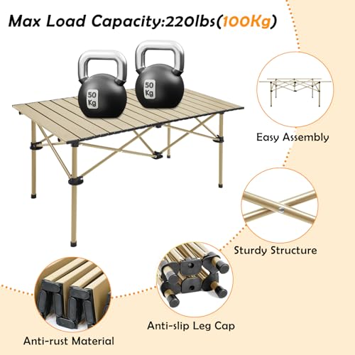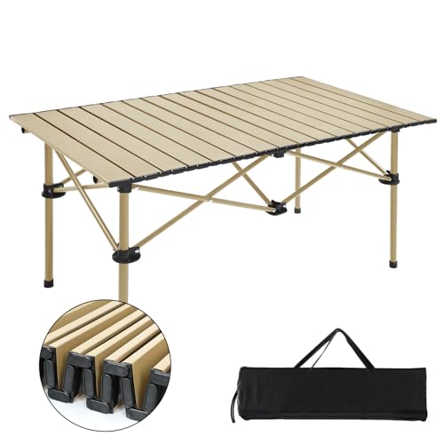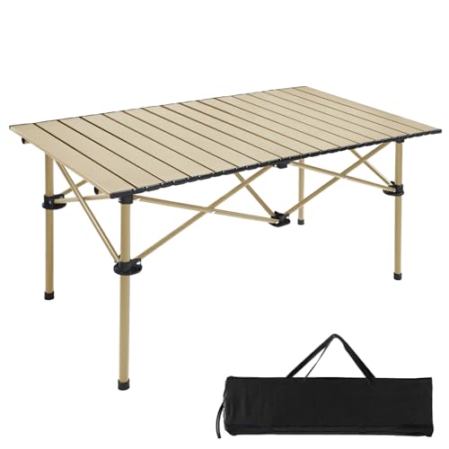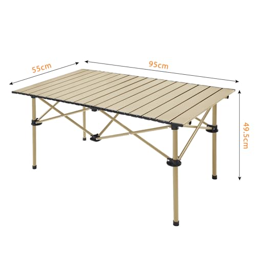 JOYART - طاولة تخييم من الألومنيوم قابلة للطي ومحمولة مع شنطة حمل للنزهات والطبخ والحديقة والمشي لمسافات طويلة والسفر تحمل حتى 60 كجم من جوي ارت، 95 × 55 × 50 سم، بيج