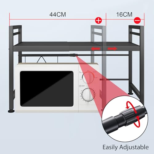 - قابل للسحب والتعديل: يقف رف الميكروويف القابل للتعديل ذو المستويين القابل للتعديل للمطبخ من 15.7 انش إلى 23.6 انش، ويمكن تعديل الارتفاع بـ 3 مستويات.