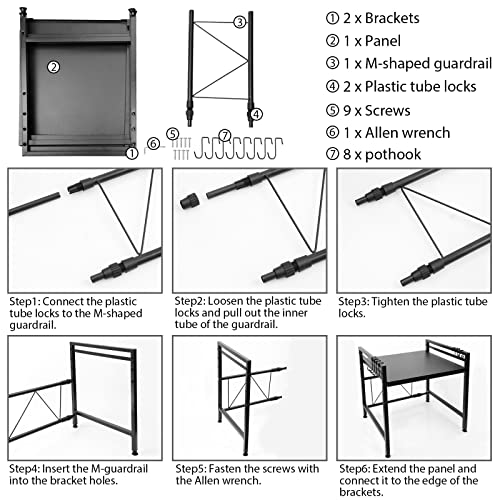 - سهل التنظيف والتجميع: سطح رف الفرن أملس والغبار والزيت وما إلى ذلك. لا يمكن إزالته إلا عن طريق المسح بلطف بقطعة قماش. دليل تركيب رف المطبخ متضمن في العبوة، ويمكن إكمال التركيب في 5 دقائق فقط.
