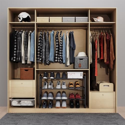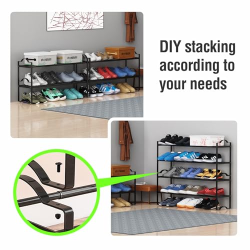 JoyBHole - رف احذية قابل للتوسيع، حامل معدني قوي سهل التركيب وقابل للتعديل، منظم لتخزين الاحذية للمدخل والخزانة (اسود، طبقتين)