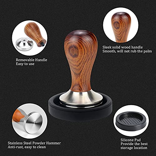 - مكبس قهوة وإسبريسو 51 ملم: قطر 51 ملم مناسب لمعظم سلال الفلتر. إنه منتج ذو تصميم عالي الجودة مصنوع من الستانلس ستيل مع مقبض خشبي حقيقي مريح. مثالي لتحضير اسبريسو إيطالي كامل القوام برائحة ومذاق رائعين.