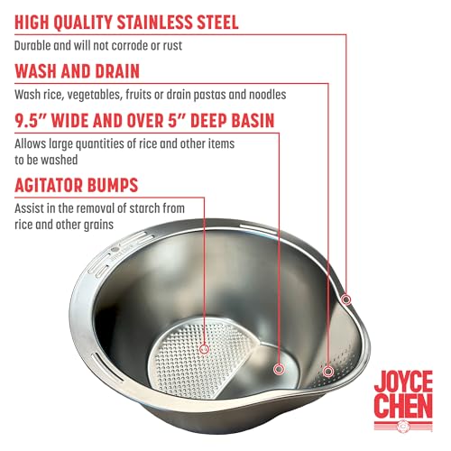 JOYCE CHEN - جويس تشين مصفاة ارز من الستانلس ستيل، مصفاة غسيل الارز