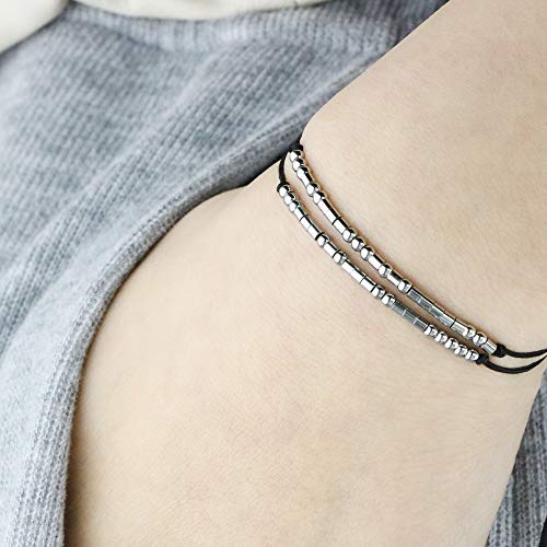 JoycuFF - جويكوف اساور شفرة مورس للنساء، هدايا ملهمة مضحكة للام والابنة والاخت والصديقة المقربة قابلة للتعديل، مجوهرات ملتفة من المعدن والحجر الرملي