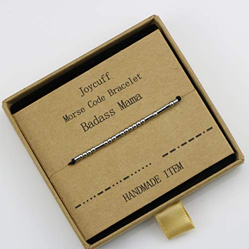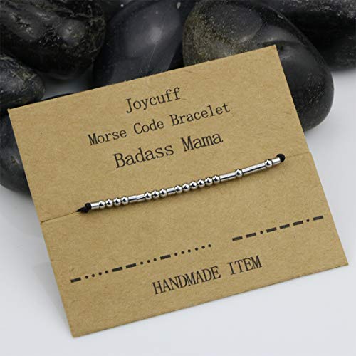 JoycuFF - جويكوف اساور مورس كود للنساء، هدايا للام والابنة والاخت والصديقة المقربة قابلة للتعديل، سوار ملتف من الحرير مطرز بالخرز، مجوهرات ملهمة مضحكة، 9 انش، معدن، حجر رملي