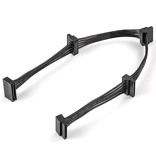 - سلك نحاسي قياسي مغلف بالقصدير 18 بمعيار السلك الأمريكي، تحتوي كابلات الطاقة بهارد HDD على 4 فيشات كهربائية أنثى ساتا 15 دبوس ومقبس ذكر 1 ساتا 15 دبوس في طرف واحد؛ مصنوع من موصلات مرنة 18 بمعيار السلك الأمريكي لأداء موثوق عند توصيل أربعة محركات أقراص صلبة ساتا بمصدر طاقة؛ يدعم جهد الطاقة 3.3 فولت و5 فولت و12 فولت بين محركات ساتا 1 و2 و3 ووصلات إمداد الطاقة بدون أي تدهور للأداء