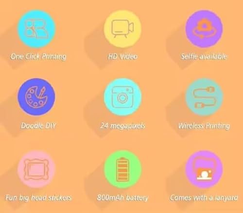 - كاميرا ديجيتال لطباعة فورية للأطفال، مزودة بكاميرتين لالتقاط صور السيلفي، تدعم تسجيل الفيديو عالية الدقه HD بدقة 1080 بكسل، وتأتي بدقة 48 ميجابكسل.