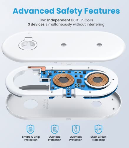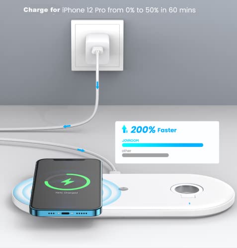 Joyroom - شاحن من جوي روم بتقنية USB Type-C، متوافق مع الساعات الذكية والساعات سمارت، بثلاثة منافذ لاسلكية ومغناطيسية