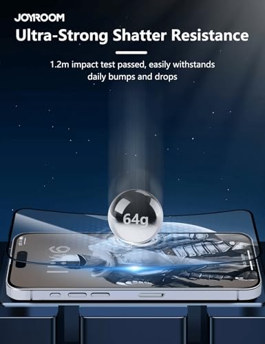 Joyroom - شاشة حماية من الزجاج المقوى من جوي روم، (شاشة كاملة بحافة سوداء ودرجة إمالة 2.5) زجاج شفاف لاجهزة آيفون 15 بلس/آيفون 16 بلس (عالية الدقة HD+مقاوم للغبار)، JR-MLG0278