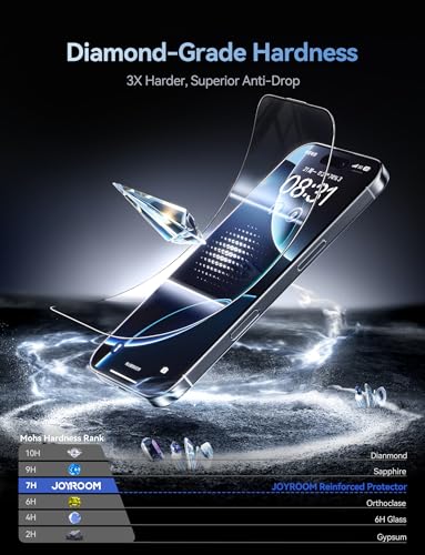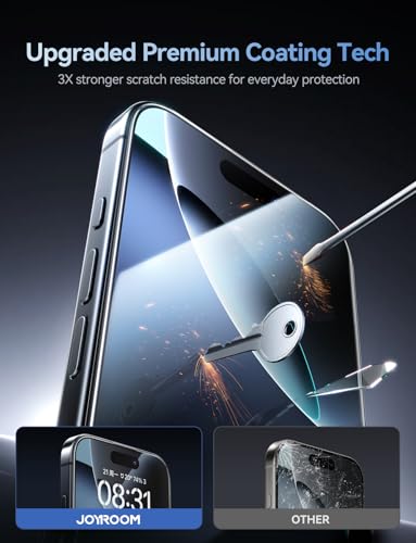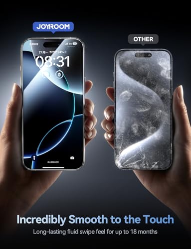 Joyroom - شاشة حماية JR-MQS0569 من الزجاج المقوى لموبايل آيفون 17 برو ماكس تغطية كاملة بدرجة إمالة 2.5 دي مع صلابة معززة تصميم مقاوم للغبار وضوح عديم اللون من جوي رووم، لون أسود