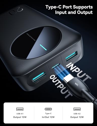 - سعة هائلة 20,000 مللي امبير في الساعة: بطارية ليثيوم بوليمر مدمجة توفّر طاقة بسعة 20,000 ملّي أمبير للحفاظ على شحن هاتفك الذكي وجهازك اللوحي وملحقاتك لعدة أيام دون الحاجة إلى إعادة الشحن.
