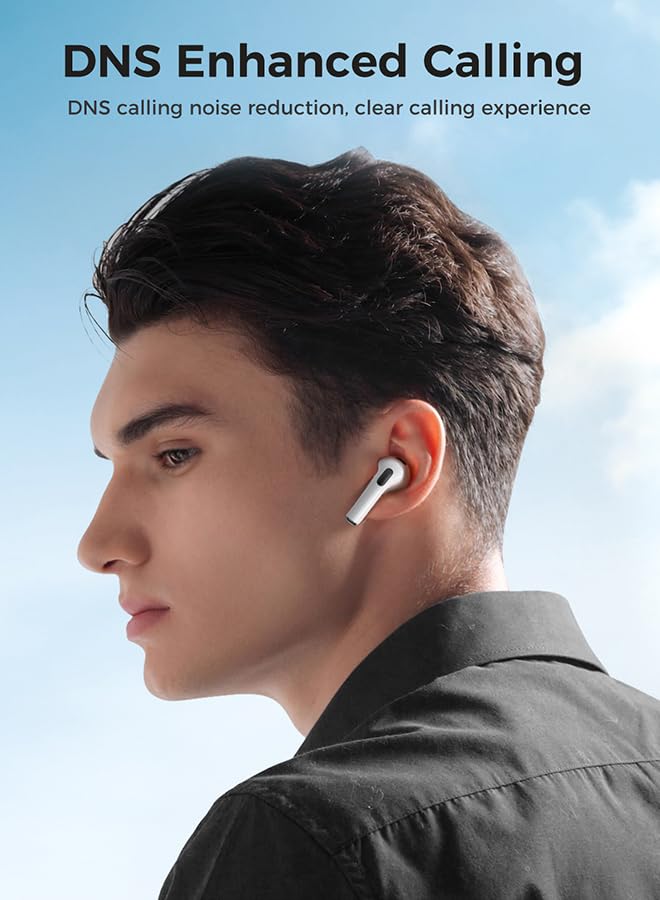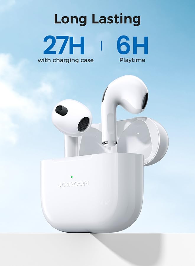 Joyroom - جوي رووم سماعة بلوتوث JR-T03S بلس الجيل الرابع اصدار جيري تي دبليو اس بخاصية الغاء الضوضاء والانبثاق، ابيض، في الاذن