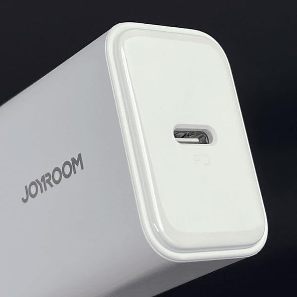 Joyroom - جوي رووم شاحن اوروبي JR-TCF06 PD 20 وات مع كابل C الى طول 1 متر ابيض