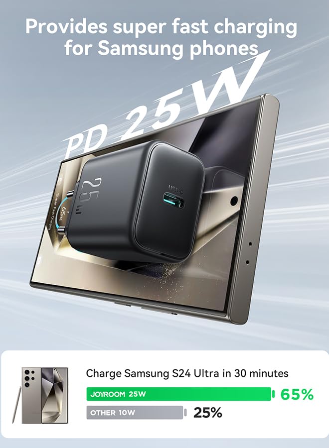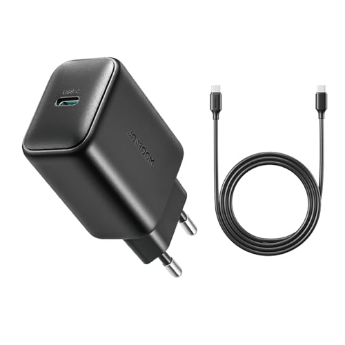Joyroom - شاحن حائط سريع JR‑TCF23 25 واط USB‑C PD مع كابل USB نوع C إلى USB‑C بطول 1 م، محول شحن سريع بمنفذ واحد للموبايلات الذكية والتابلت من جوي رووم - أسود