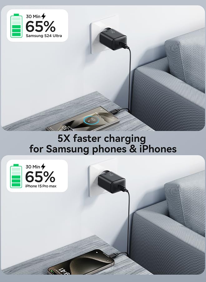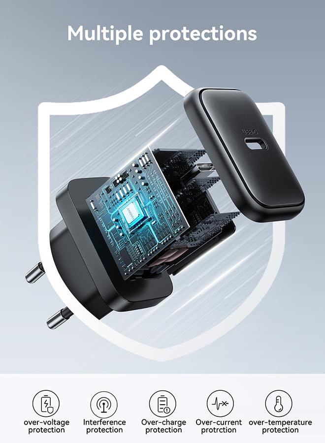 - حماية أمان من 6 نقاط - حماية مدمجة ضد التيار الزائد والجهد الزائد وقصر الدائرة الكهربائية وارتفاع درجة الحرارة لشحن آمن وموثوق.