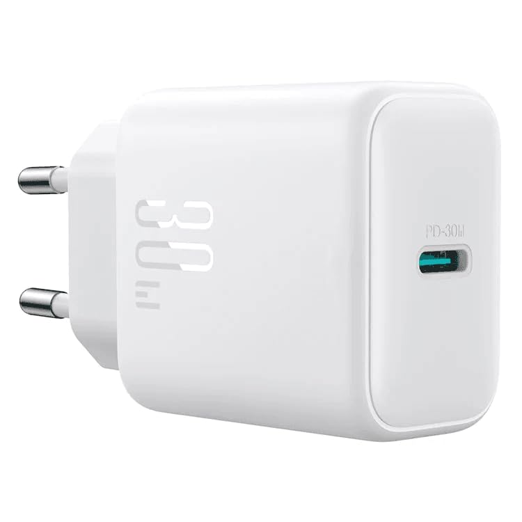 Joyroom - شاحن من جوي روم متوافق مع الأجهزة اللوحية بمنفذ واحد، سريع بقدرة 30 وات وقابس أوروبي