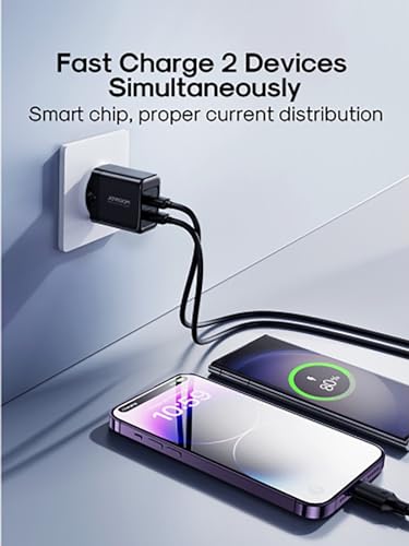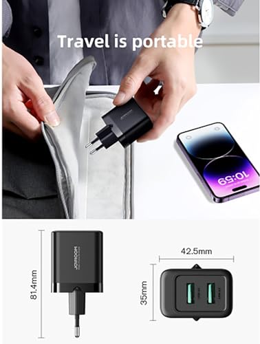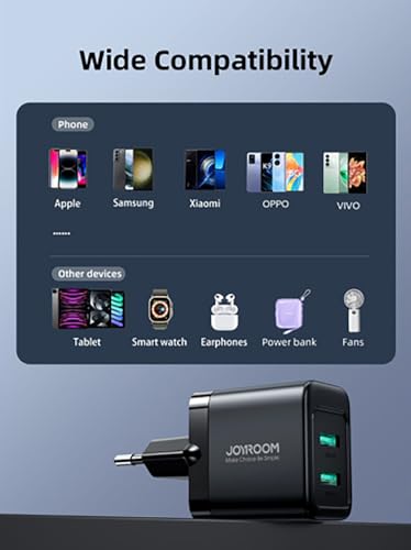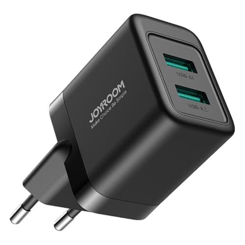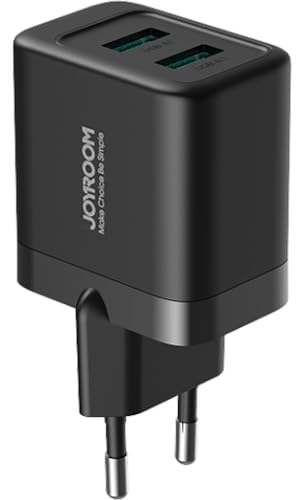 Joyroom - شاحن حائط JR-TCN01 بقدرة 12 واط للشحن السريع مزود بمنفذين USB نوع A بتصميم صغير مناسب للسفر من جوي روم، أسود