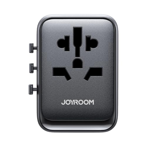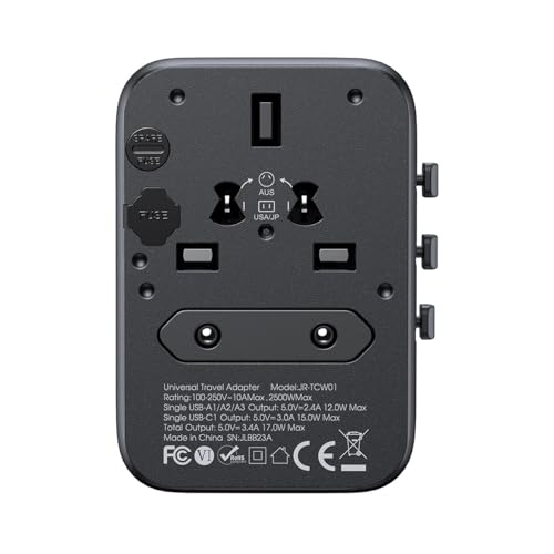 Joyroom - شاحن سفر عالمي JR-TCW01 بقوة 17 وات، مع 3 منافذ USB-نوع ايه ومنفذ USB-نوع سي، يدعم الشحن السريع حتى 4 أجهزة، للتثبيت على الحائط مدمج للموبايلات وأجهزة التابلت من جوي رووم - أسود