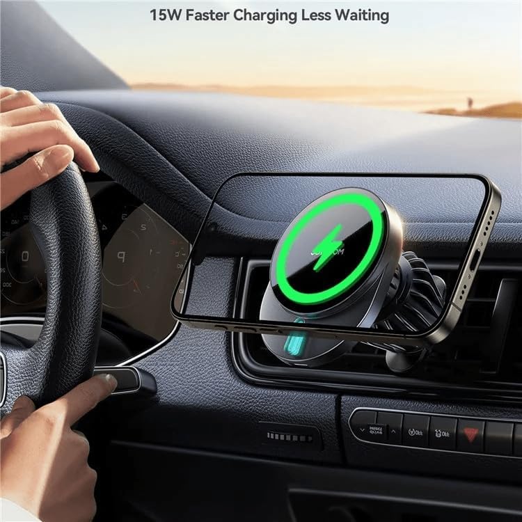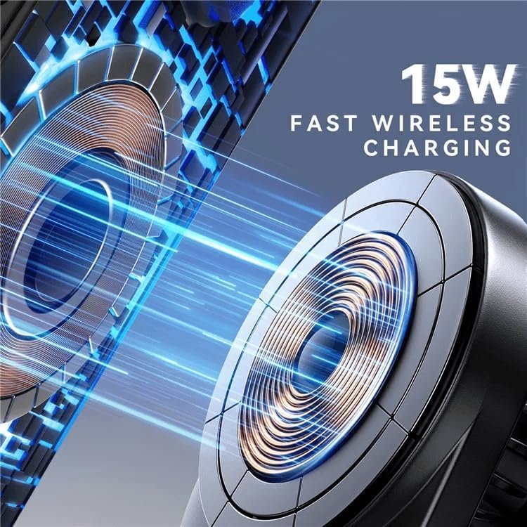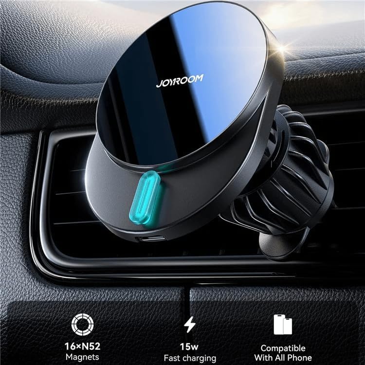Joyroom - حامل بشاحن سيارة لاسلكي ZS409 يدعم الشحن السريع بقدرة 15 وات وبتقنية كيو اي وماج سيف ومغناطيس نيوديميوم مزدوج ودوران 360° ومنفذ طاقة USB نوع C من جوي رووم، لون أسود