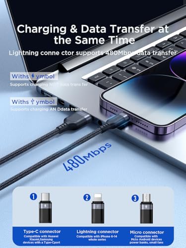 - تصميم مضفر متين - يتحمل الانحناءات والسحب والاستخدام اليومي.