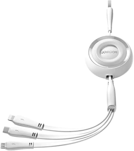 Joyroom - كابل شحن صغير 3 في 1 قابل للسحب 3.5 أمبير من جوي روم بطول 1 م، أبيض، S-A40