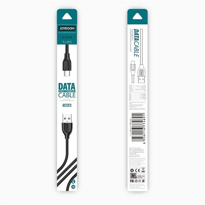 Joyroom - كابل بيانات نوع سي سلسلة سو للشحن السريع للموبايلات 100 سم S-L352 من جوي روم - اسود، لهواتف خلوية