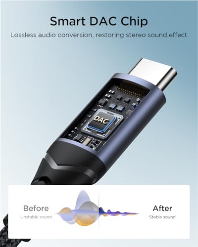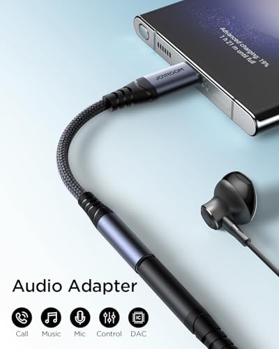Joyroom - محول صوت سلسلة نقل الصوت من منفذ نوع سي إلى منفذ صوت 3.5 ملم من جوي رووم، أسود، SY-C01