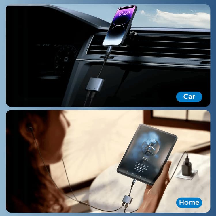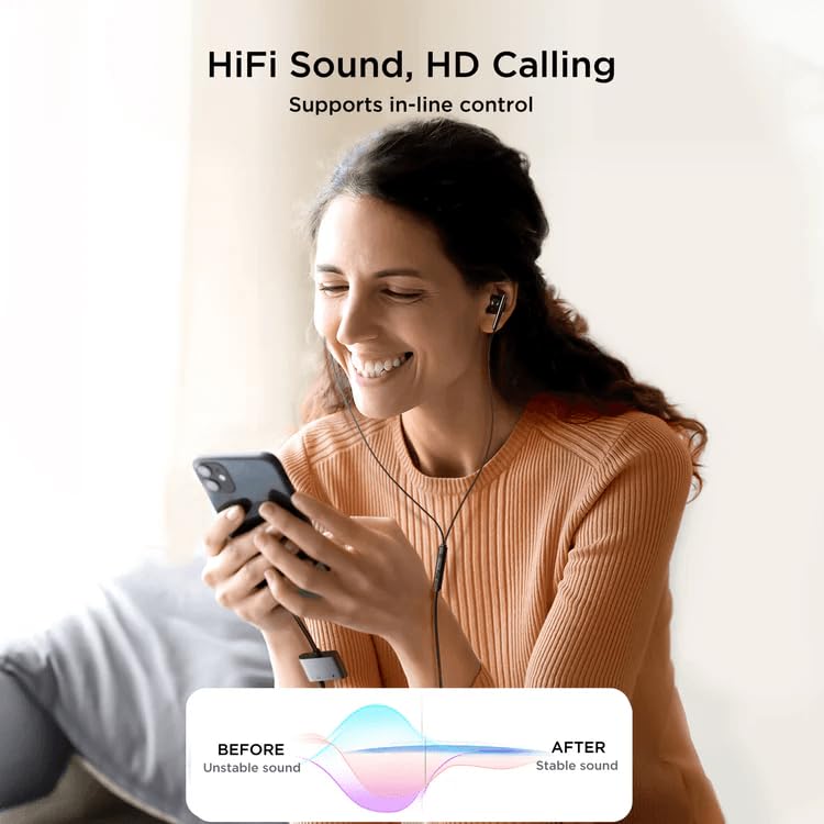 Joyroom - محول صوت 2 في 1 من سلسلة نقل الصوت SY-L02 جوي رووم لون أسود لهاتف ذكي