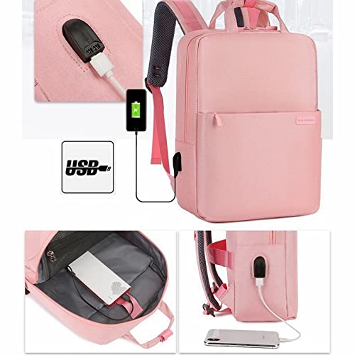 joytiger - شنطة ظهر للاب توب للرجال والنساء ، عالية الجودة بسعة كبيرة بمنفذ شحن USB مدرسية مقاومة للماء اللون: بينك زهري عدد 1