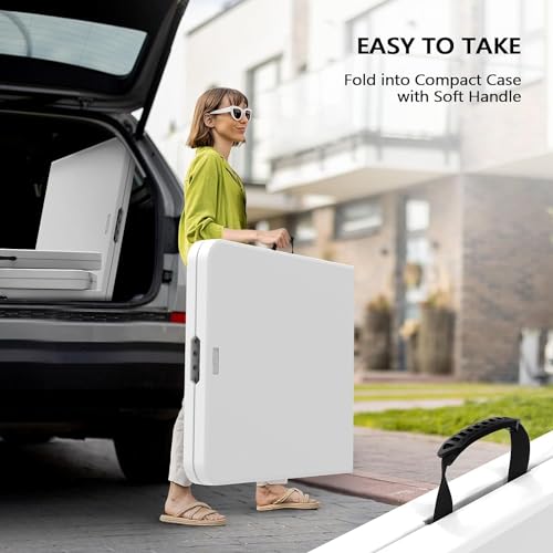 - سهلة الحمل: بفضل وظيفة الطي والمقبضين، فإن هذه الطاولة القابلة للطي سهلة الحمل وموفرة للمساحة للتخزين. يسهل حملها مثل حقيبة السفر ويمكن تخزينها في أي صندوق سيارة.