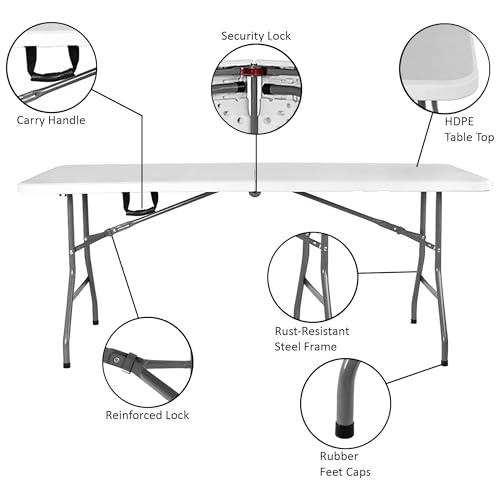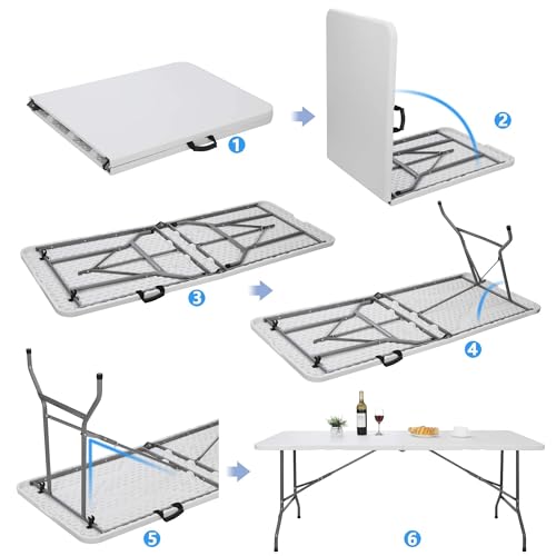 Joyyko - ترابيزة تخييم قابلة للطي للحديقة والنزهات والبلكونة متعددة الوظائف تستوعب 8 أشخاص مع مقبض حمل أبيض 1.8 متر × 74 سم من جويكو