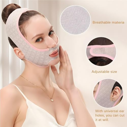 Joyzzz - حزام شد الوجه من جويزز، قناع رفع خط على شكل حرف V قابل لاعادة الاستخدام، حزام تنحيف الوجه قابل للتعديل لشد الوجه وتقليل التجاعيد، لتقليل الذقن المزدوجة للنساء والرجال