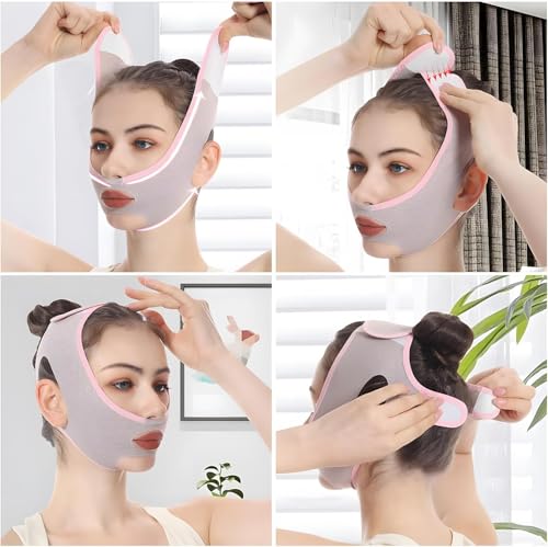 - 【تأثير رفع الوجه】يوفر حزام شد الوجه هذا رفعًا وشدًا مرئيًا على الفور، مما يقلل بشكل فعال من الذقن المزدوجة والطيات الأنفية، مما يخلق محيط وجه محدد على شكل حرف V للحصول على مظهر أكثر شبابًا.